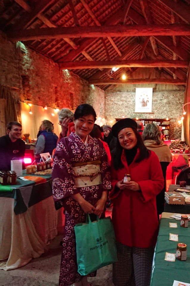 私達は少しでも目立って話しかけてもらうために、頑張って着物でマーマレードの近くに立ったところ、物珍しさから皆さん集まってこられ沢山試食して下さいました。夜さくらマーマレードという、ほうじ茶風味の桜の花入り柚子マーマレードが人気で、なんと1日目で完売。着物が珍しくて、色々な人から話しかけられましたが、中でも面白かったのが、帯は赤ちゃんを背負って入れるためのものか、ただのファッションかという質問でした。そういう考え方もあるのね。とおかしかったです。