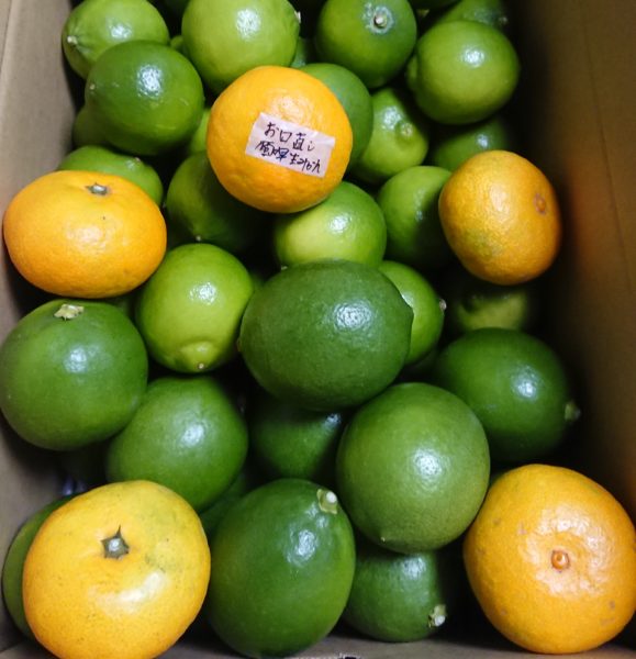 そういうご縁で繋がった方のお一人でご主人がとても綺麗な柑橘を作っていらっしゃる方から、箱一杯のライムとグリーンマイヤーレモン。そして早生ミカンが届きました。