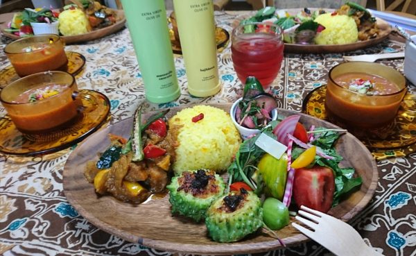 夏は血液がドロドロになりやすいので、血の流れをスムーズにすることと、食欲が落ちるのでスパイスなどを使ってパワーアップ。ご飯にはサフランを加えました。